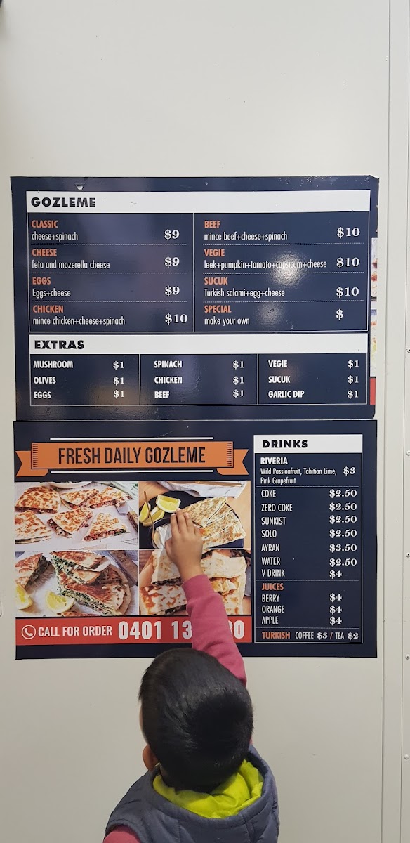 Drinks are also on offer, featuring refreshing choices like Ayran and juices for A$5, alongside classic favorites such as Coke and water for just A$3. And let’s not forget the extras! Customize your gozleme with options like mushrooms, olives, or even sujuk for an extra flavor kick.